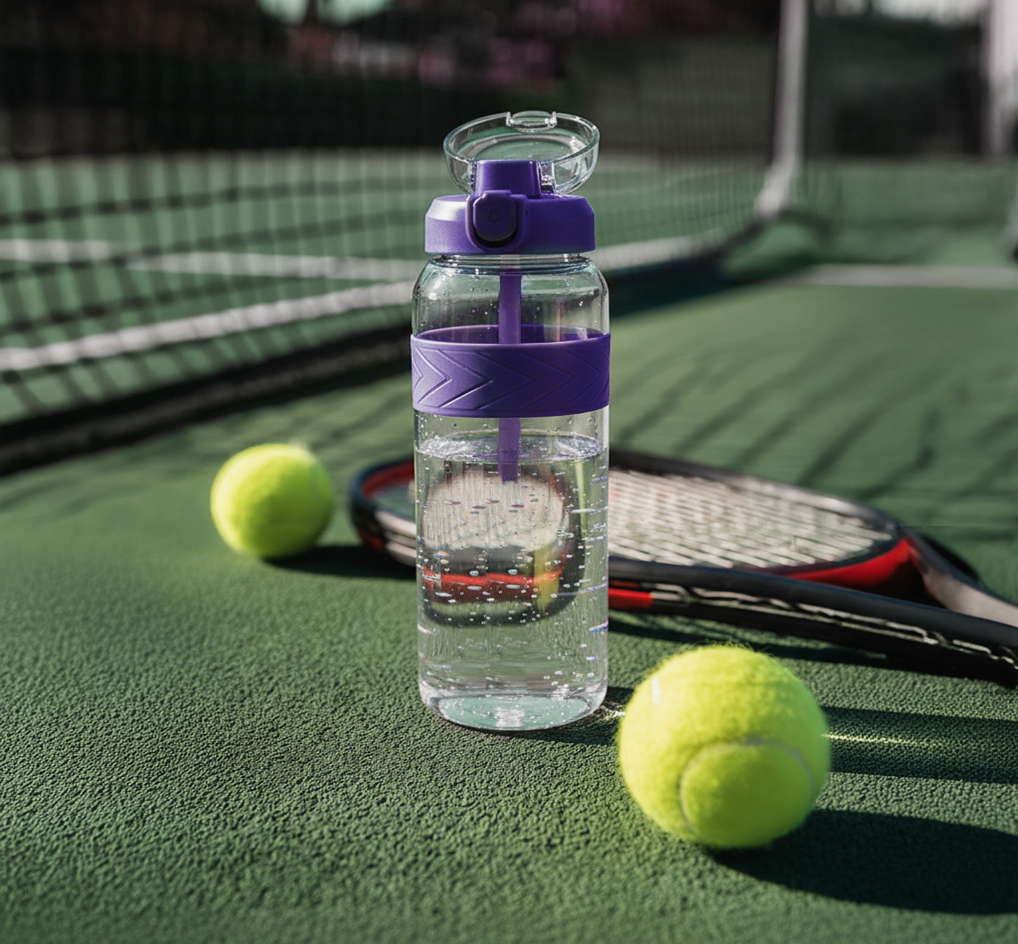 BPA-free Tritan™ plastic (clear body, purple-tinted cap)